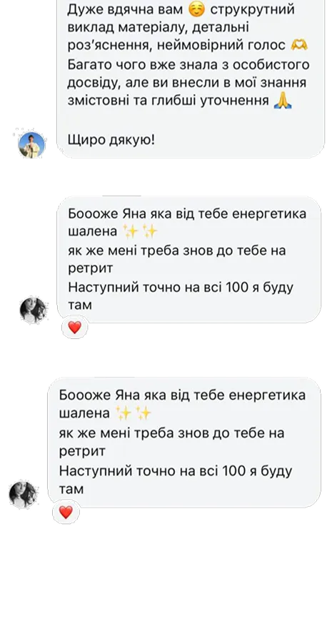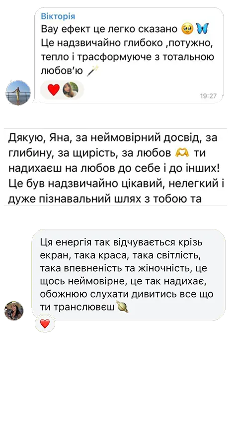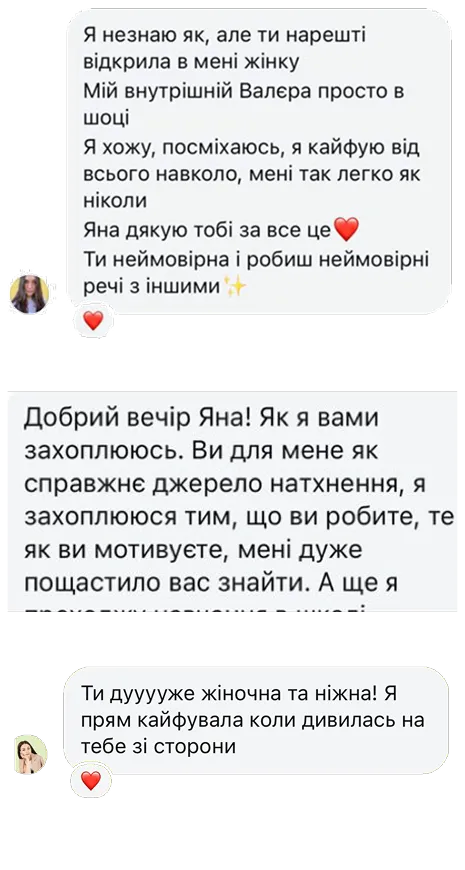 Я вмію створювати простір довіри, де народжуються справжні відповіді, радість та жага до життя. Після взаємодії зі мною на ретритах, сесіях, цвяхотерапії - жінки змінюються свої життя.